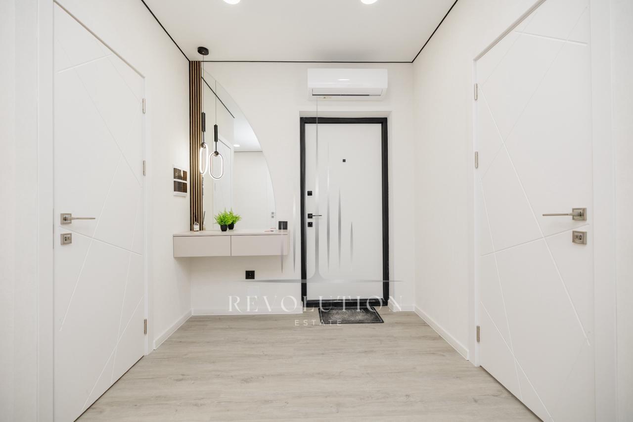 • BENEFICII: Geamuri panoramice, Climatizor, Ușă blindată, Supraveghere video și pază, Balcon de tip deschis, Priveliște frumoasă, Lift, Antreu, Garderobă, Bucătărie, Living, Geamuri termopane