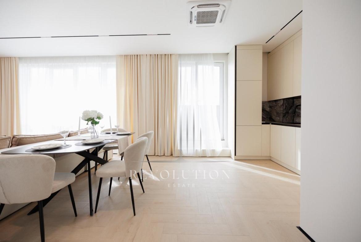 • BENEFICII: Loc de parcare, Geamuri panoramice, Climatizor, Încălzire prin pardoseală, Ușă blindată, Supraveghere video și pază, Balcon de tip deschis, Priveliște frumoasă, Zonă de parc, Lift, Hol, Antreu, Garderobă, Terasă de tip deschis, Birou, Bucătărie, Living, Salon, Geamuri termopane