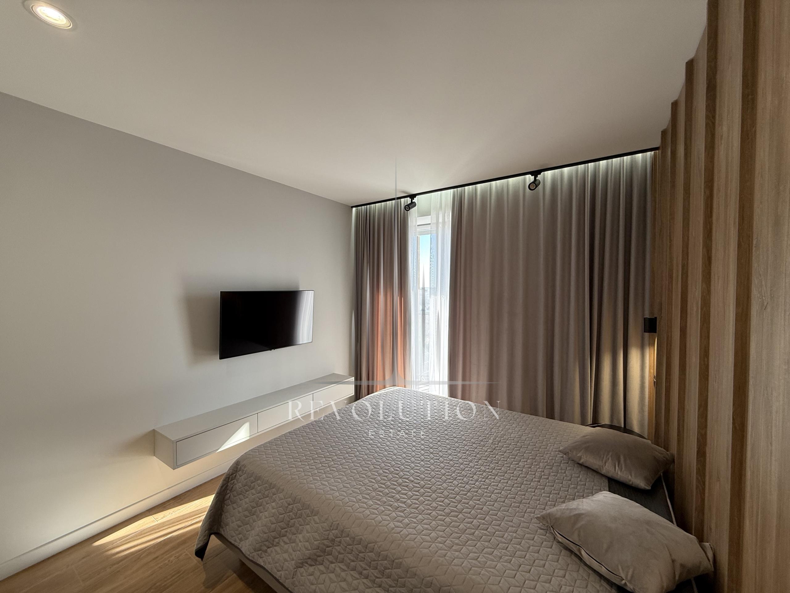 • BENEFICII: Loc de parcare, Geamuri panoramice, Climatizor, Încălzire prin pardoseală, Ușă blindată, Supraveghere video și pază, Balcon de tip deschis, Priveliște frumoasă, Lift, Garderobă, Bucătărie, Living, Geamuri termopane
