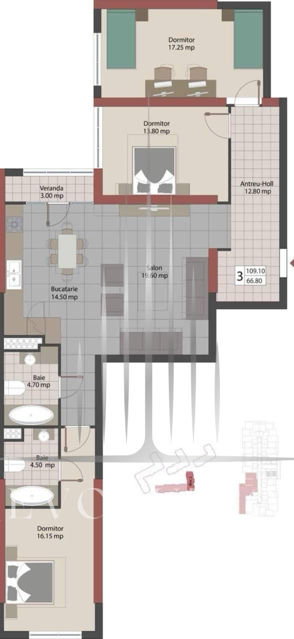 • Suprafața: 109 m2